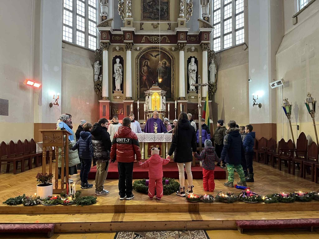 Kaip ir kas sekmadienį vaikai susirinko prie altoriaus kalbėti ,,Tėve mūsų". Linki vieni kitiems ramybės, gieda, sudėję ant krūtinės rankas ateina prie altoriaus, kad klebonas juos palaimintų, meldžiasi drauge su visais.
