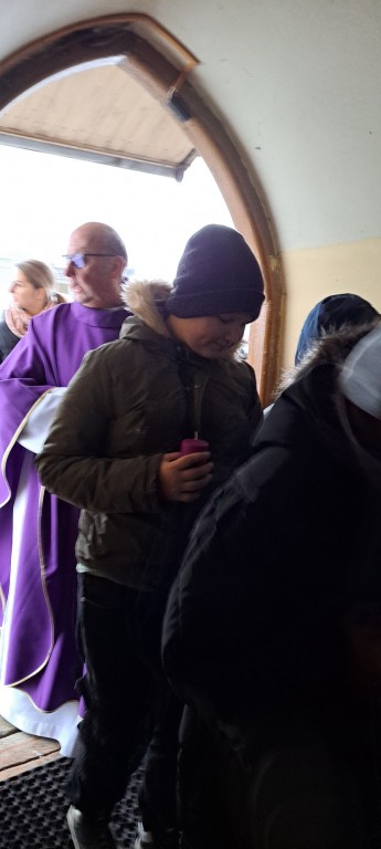 Šv. Mišios šv. Jurgio bažnyčioje prasidėjo procesija. Į bažnyčią pirmiausia įnešamas Kryžius.