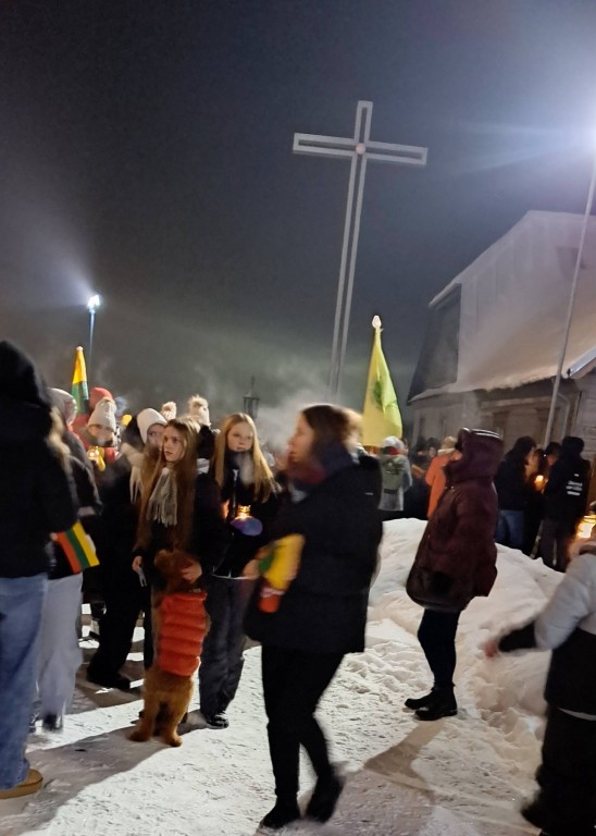 Į vieną seniausių Lietuvos bažnyčių Kėdainių šv. Jurgio bažnyčią sausio 12 ėjo žmonės su uždegtomis žvakelėmis rankose, širdies šiluma krūtinėse, giesme bei malda lūpose. Daugelis pasipuošę tautos ženklais. Smagu buvo matyti tiek daug jaunimo, mokinių, mokytojų, įvairų rajono įstaigų ir organizacijų, žmonių, svečių.