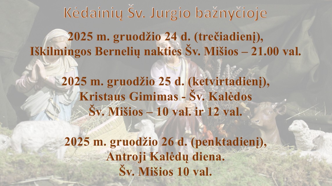 Gruodžio 25 d. Kristaus Gimimas - Šv. Kalėdos, Šv. Mišios kaip Sekmadienį – 10.00 ir 12.00 val.