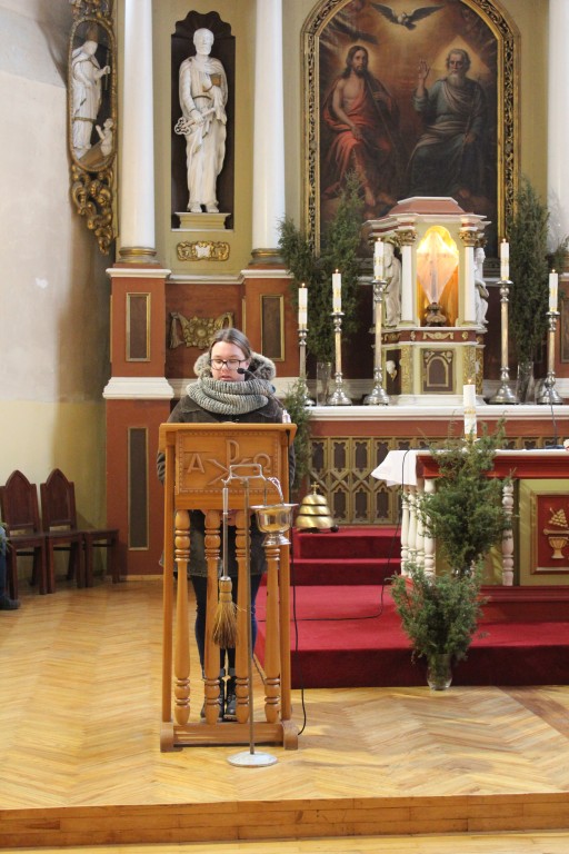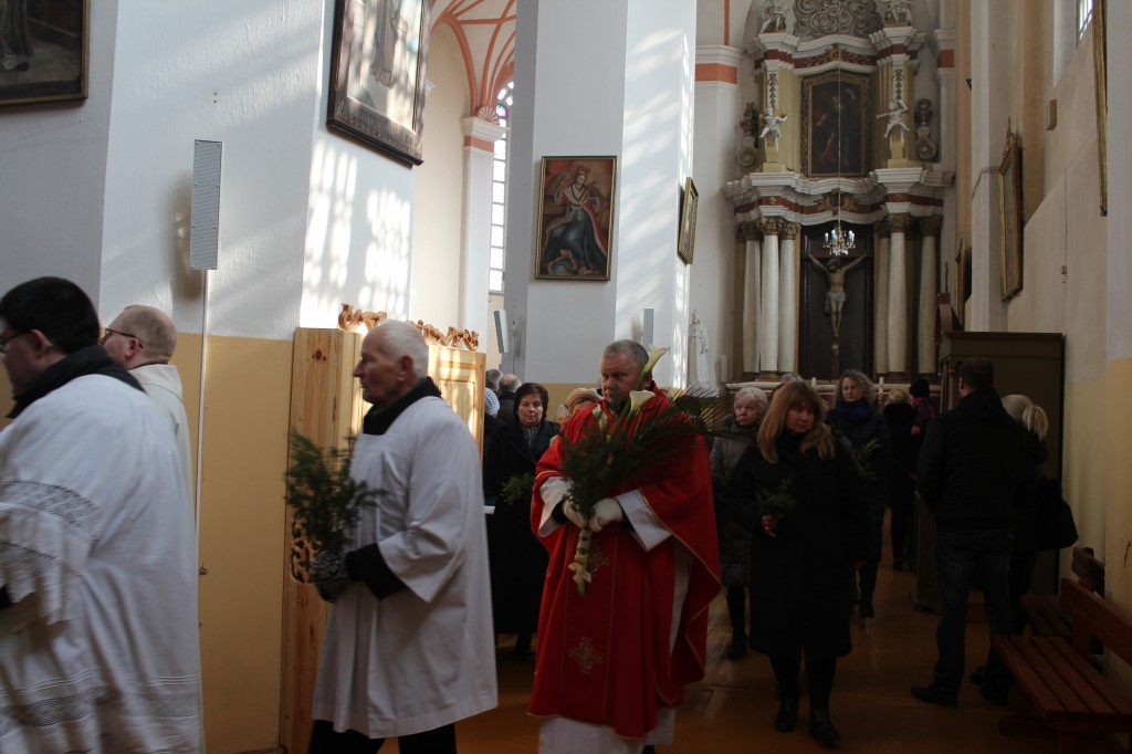 Iškilminga verbų procesija bažnyčioje prasidėjo nuo Didžiojo altoriaus. Einame aplinkui ratu nuo vieno šoninio altoriaus iki kito ir grįžtame atgal prie Didžiojo altoriaus. Klebonas Artūras Stanevičius neša papuoštą palmės šaką. Nešini verbomis eina bažnyčios choristai, adoruotojos, Marijos legiono maldininkės, parapijiečiai. Visi jungėmės prie pasaulio Katalikų švenčiančių Jėzaus kančios (Verbų) sekmadienį.