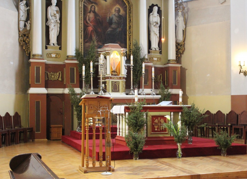 Pro bažnyčios langų vitražus saulė pažėrė spalvas, kurios lopinėliais gulė ant grindų, kad pagarbintų Kristų. Žavi pavasario saulės nuolankumas Kristui. Visi tuo pačiu Gavėnios keliu einame į Didžiąją savaitę giedodami „Osana aukštybėse“ !