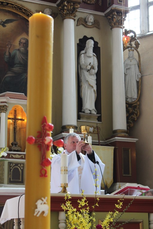 Po 12 val. Šv. Mišių, kurias aukojo klebonas Artūras Stanevičius visi drauge sugiedojome Lietuvos himną. Klebonas Artūras Stanevičius padėkojo maldininkams dalyvavusiems šv. Jurgio atlaiduose, o pašventintus margučius įteikė seimo nariui Dariui Kaminskui, kad seime pratęstų tą dalijimosi vienų su kitais, draugiškumo ir pagarbos vienų kitiems tradiciją bei palinkėtų seimo nariams sutelkto, atsakingo ir nuoširdaus darbo šalies žmonių labui.