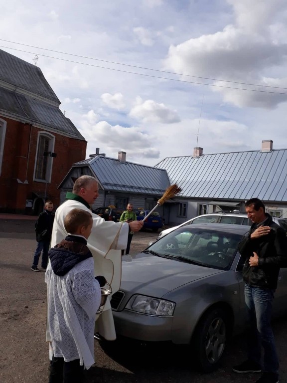 Po Šv. Mišių Klebonas Artūras Stanevičius palaimino automobilius ir kitas transporto priemones įteikdamas jų savininkams atšvaitus. Klebonui talkino vaikai, kuriems buvo graži pamoka, kad reikia būti atidiems kelyje, saugoti save, nešioti atšvaitus ir maldoje prašyti Dievo palaimos keliaujant.