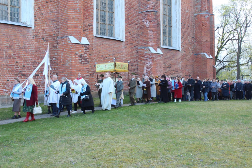 Šv. Mišias aukojęs klebonas Artūras Stanevičius priminė, kad atėję į Kristaus Prisikėlimo šventę atsinešėme savo gerus darbus, susitelkimą, bendrą maldą ir atgailą, pagalbą vienų kitiems. Dėkojo parapijos darbininkams, globėjams ir geradariams. Linkėjo šeimoms grįžus iš bažnyčios gražaus bendravimo prie Velykų stalo.