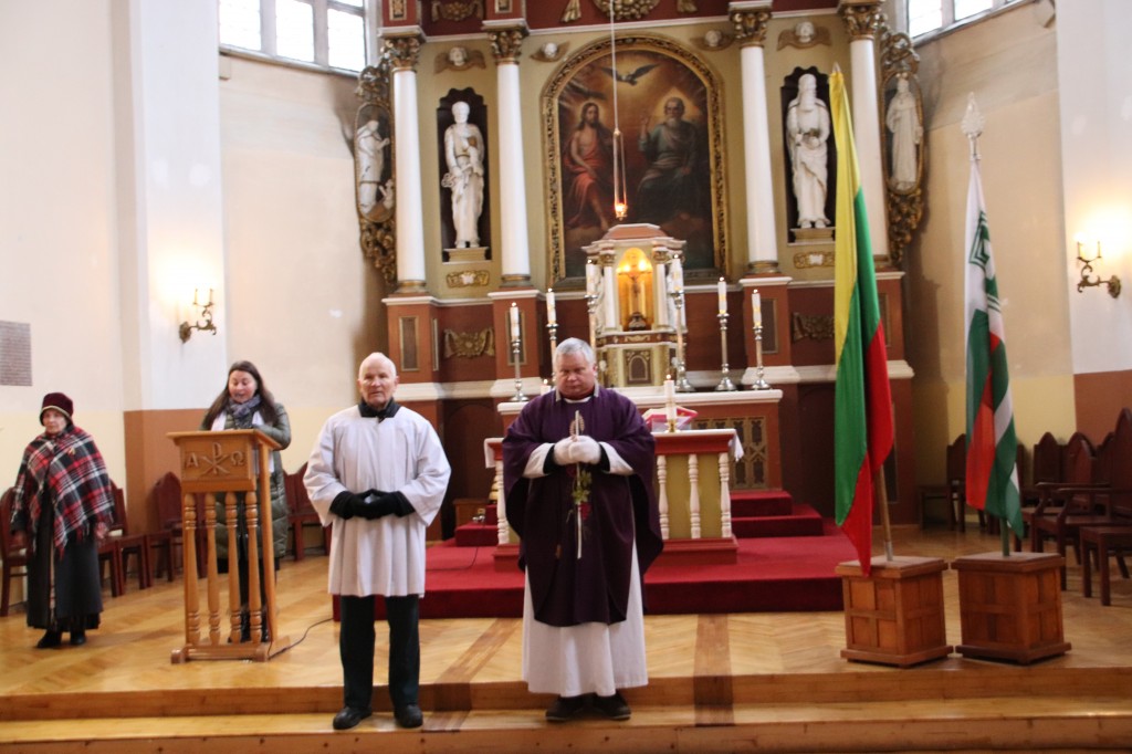 Dienos skaitinius skaitė rajono meras Valentinas Tamulis, visuotinę maldą skaitė Irena Stanislauskienė. Prie altoriaus gėles ir žvakeles palaiminimui atnešė TS-LKD nariai. Palaiminimui buvo atnešta įrėminta nuotrauka, kurioje nufotografuota Laisvės dienos paminėjimo akimirka šventoriuje.