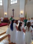 Birželio 28 dieną į Šv. Mišias rinkosi vaikai, kurie tą dieną priėmė Pirmąją Šventąją Komuniją.