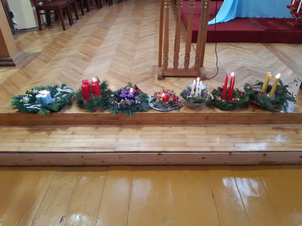 Sekmadienį lapkričio 29 d. pradėjome naujus liturginius metus. Kaip ir kasmet prie altoriaus pašventinimui atnešėme Advento vainikus. Įžiebėme pirmąją Pranašų žvakę. Keturios žvakės skaičiuos laiką iki Šv. Kalėdų.