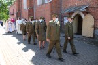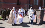 Kėdainių Šv. kankinio Jurgio benduomenė, sekmadienį išsirikiavusi šventoriuje, laukė Kauno arkivyskupo metropolito Kęstučio Kėvalo.