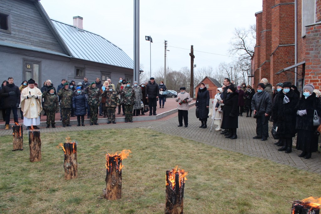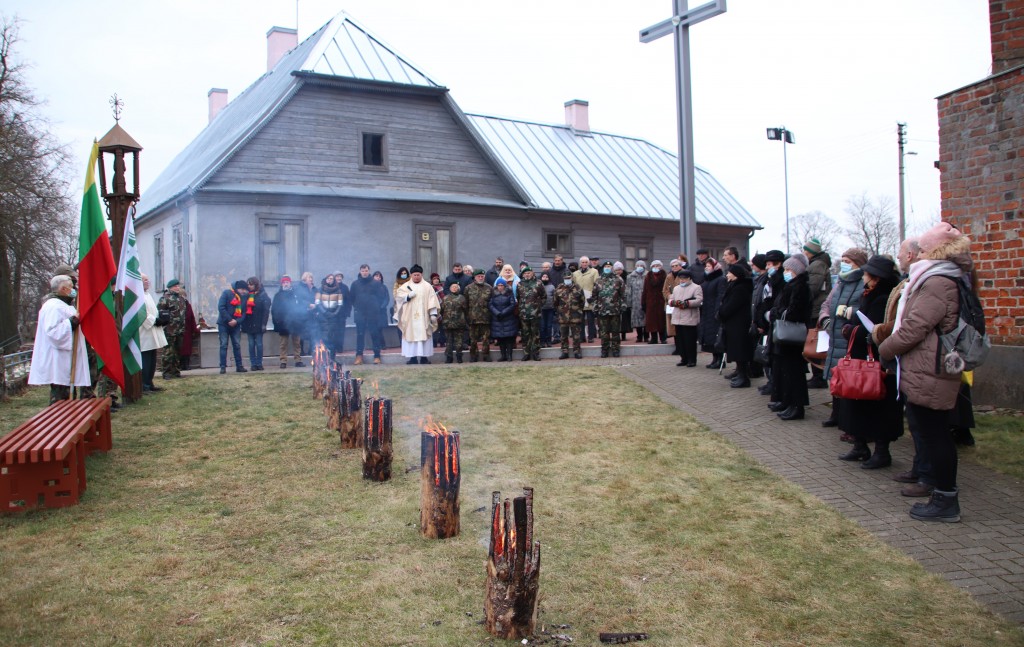 Prie šventoriuje degančių tradicija tapusių Atminimo laužų, renginį vedęs parapijos klebonas pakvietė visus sugiedoti Lietuvos himną. Po himno kalbėjo Kėdainių rajono savivaldybės meras Valentinas Tamulis, Kėdainių politinių kalinių ir tremtinių Kėdainių skyriaus vadas Jonas Šležiavičius, seimo narė Jurgita Sejonienė. Taip pat kalbėjo parapijos maldų rašytoja Irena Stanislauskienė, šaulių vadė Kristina Župerkienė...