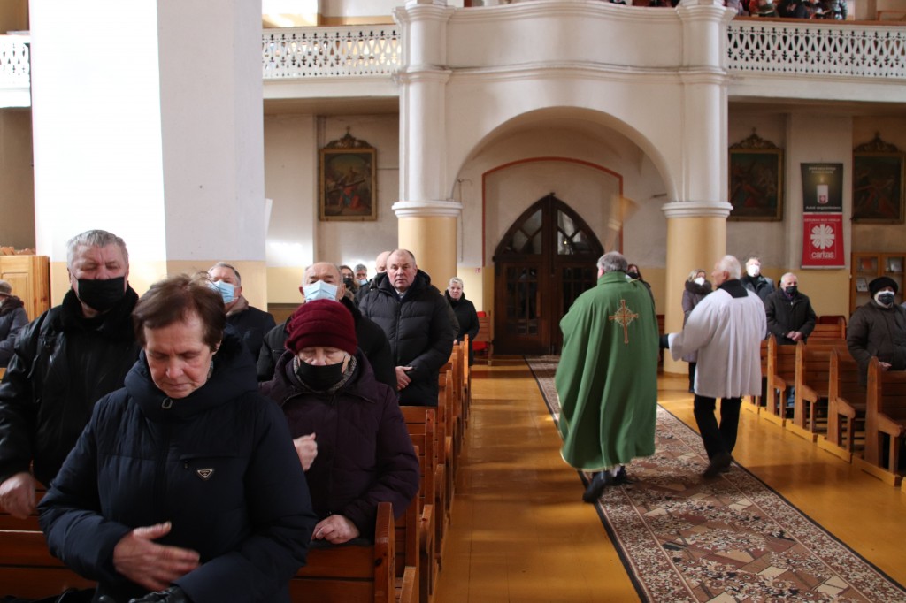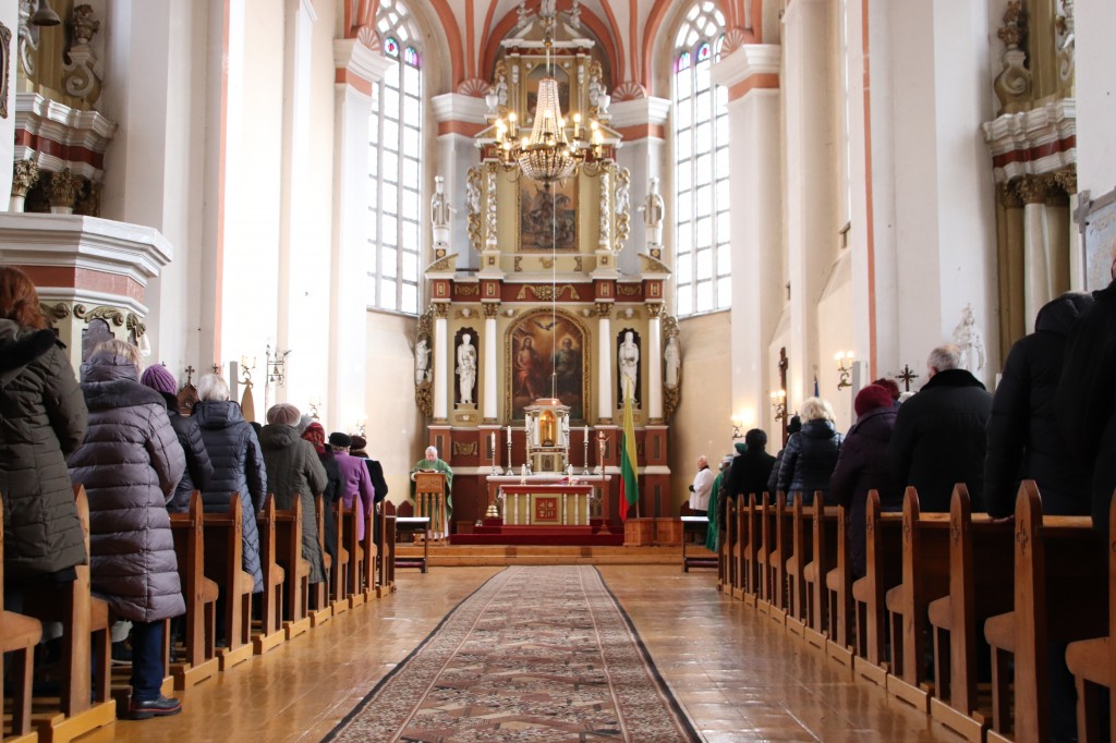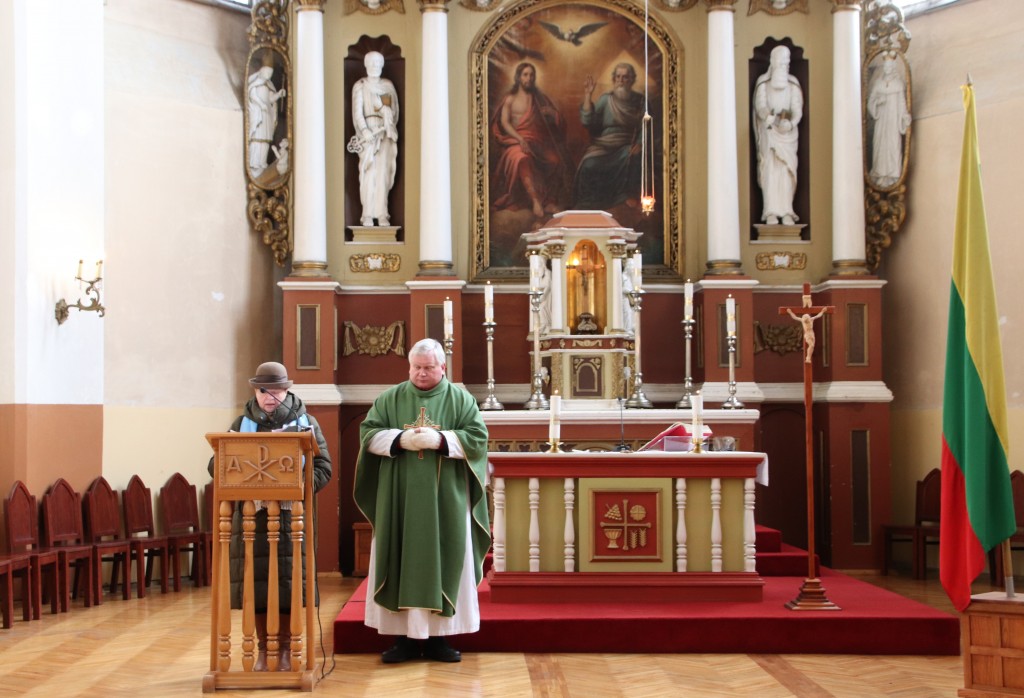 Pradėdamas Šventąsias Mišias Kėdainių Šv. kankinio Jurgio parapijos klebonas perskaitė vyskupų kvietimą melsti taikos.