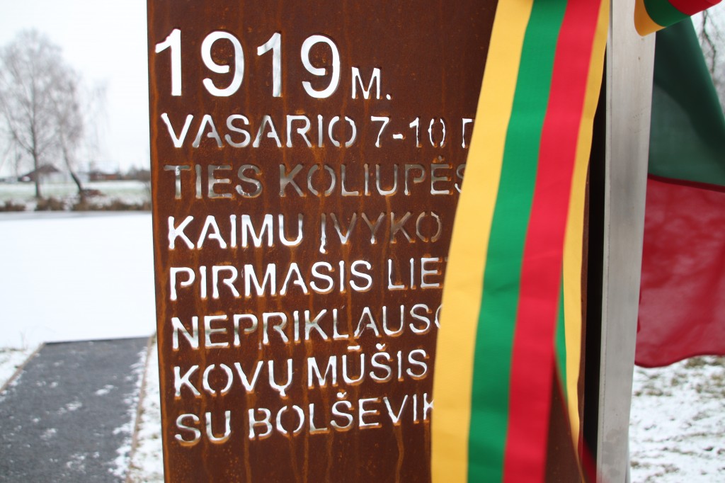 Lapkričio 23 d. (trečiadienį), 15 val. Koliupės kaime, Kėdainių rajono savivaldybės mero Valentino Tamulio pakviestas, pirmosioms nepriklausomybės kovoms su bolševikais įvykusioms 1919 m. vasario 7-10 dienoms atminti, paminklą pašventino Kėdainių Šv. Jurgio kankinio parapijos klebonas.