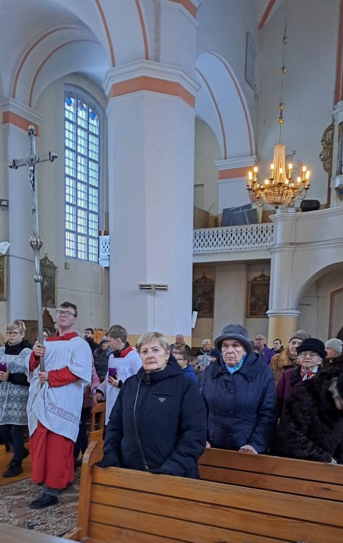 Šv. Mišios šv. Jurgio bažnyčioje prasidėjo procesija. Į bažnyčią pirmiausia įnešamas Kryžius.