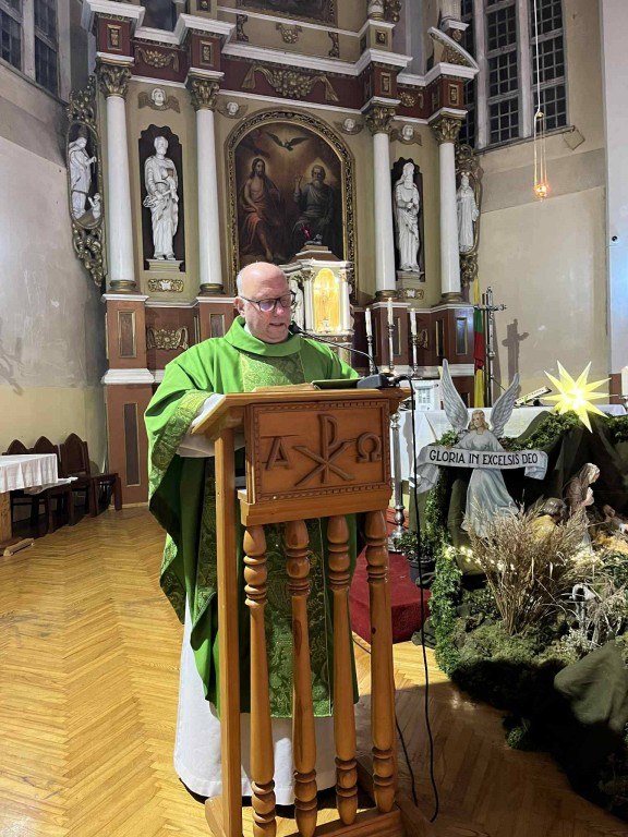Šv. Mišias aukojo klebonas teol. lic. kun. Sigitas Bitkauskas, kuris pasidalino tų metų įspūdžiais. Prieš 35 metus jis dar buvo studentas. Bažnyčioje skambėjo giesmės ,,Lietuva brangi“, ,,Lietuvos himnas“.