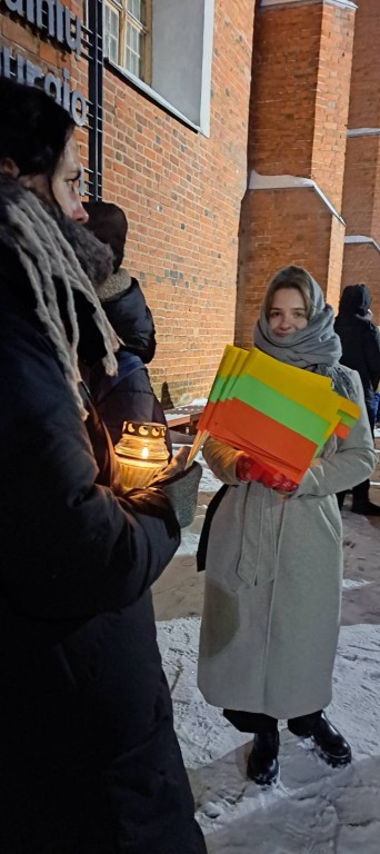 Į vieną seniausių Lietuvos bažnyčių Kėdainių šv. Jurgio bažnyčią sausio 12 ėjo žmonės su uždegtomis žvakelėmis rankose, širdies šiluma krūtinėse, giesme bei malda lūpose. Daugelis pasipuošę tautos ženklais. Smagu buvo matyti tiek daug jaunimo, mokinių, mokytojų, įvairų rajono įstaigų ir organizacijų, žmonių, svečių.