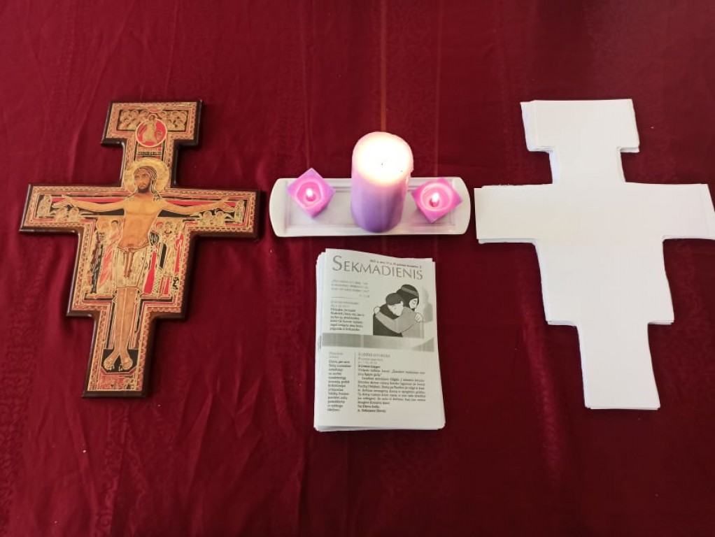 Rekolekcijas parapijos jaunimas pradėjo pamiltu gavėnios metu einamu Kryžiaus keliu, pasiimant šį kartą savo asmeninius kryžius.
